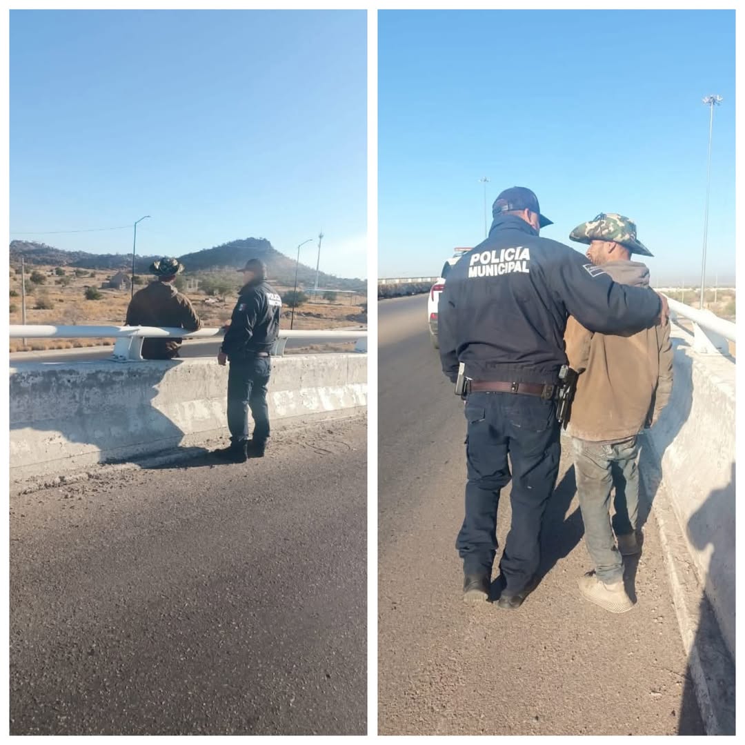 En Hermosillo los agentes de la Policía Municipal, Cantú Dias y Cruz Ríos, evitaron que un hombre acabará con su vida al estar en el borde de un puente ubicado en Carretera 15 y Zamorano, mediante diálogo lograron convencerlo para que bajara y fue trasladado a su domicilio.