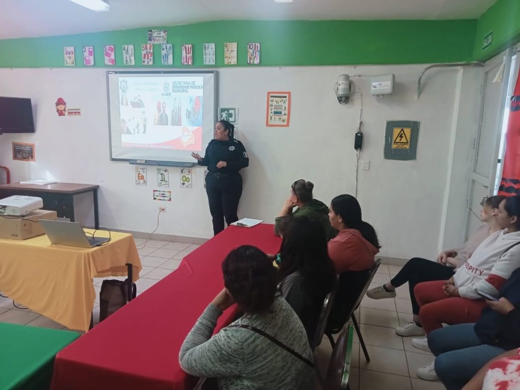 La Dirección de Programas en Prevención del Delito de la Secretaría de Seguridad Pública Municipal (SSPM) lleva a cabo pláticas dirigidas a madres y padres de familia; esta semana visitaron el Preescolar Iván Pavlov, ubicado en la colonia Nuevo Cajeme, y en la primaria Esteban Teros, de la colonia Pioneros de Cajeme.