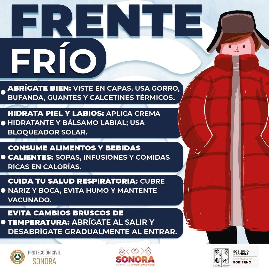 En las próximas horas se espera que un frente frío genere un descenso de temperaturas, mismo que se mantenga durante los próximos días sobre todo durante el amanecer y las noches.