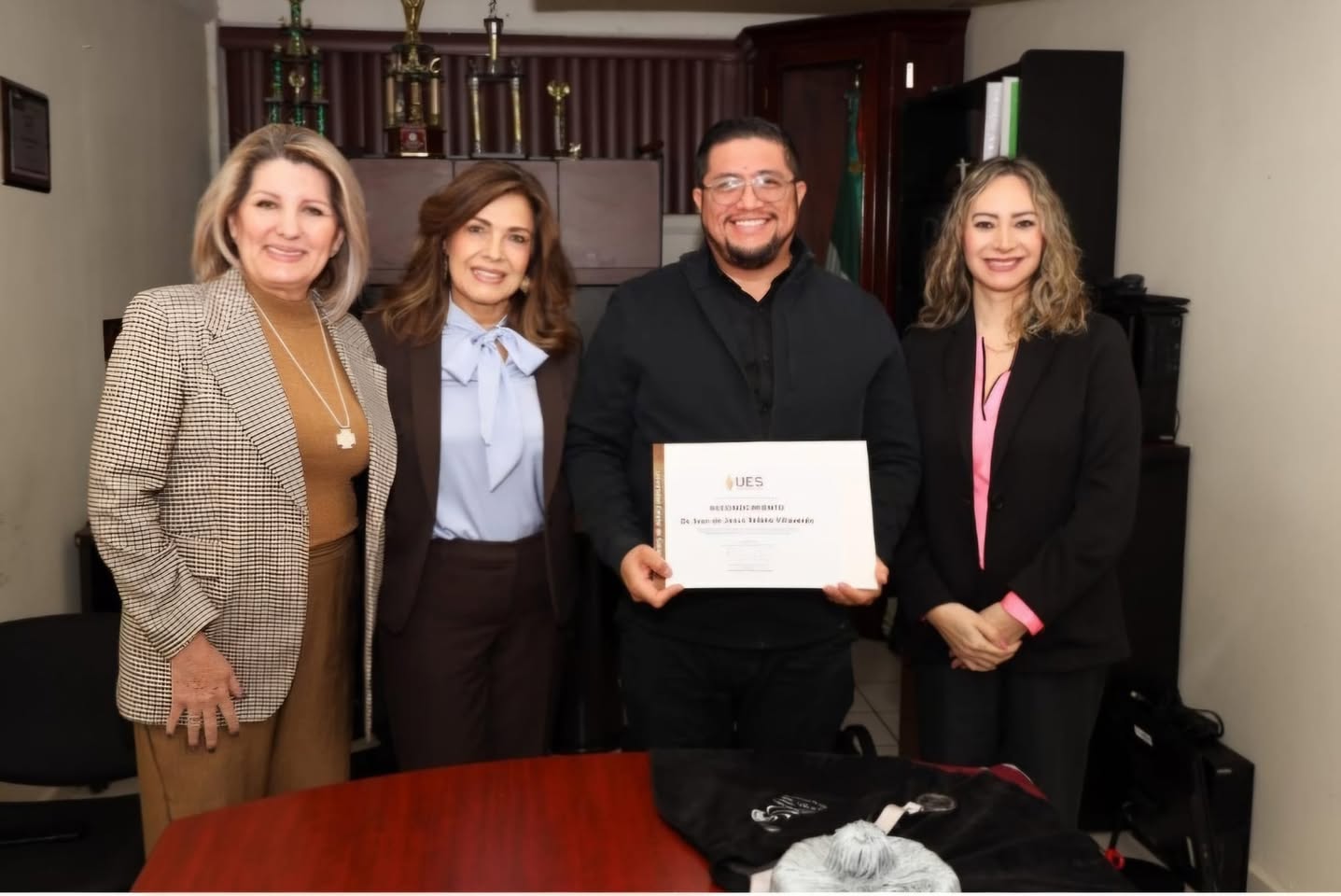 La rectora de la UES destacó la relevancia de este logro y detalló que al docente de la unidad académica Hermosillo le fue otorgado dicho reconocimiento por un Claustro Doctoral Internacional con respaldo de 25 instituciones y presencia en 23 países.