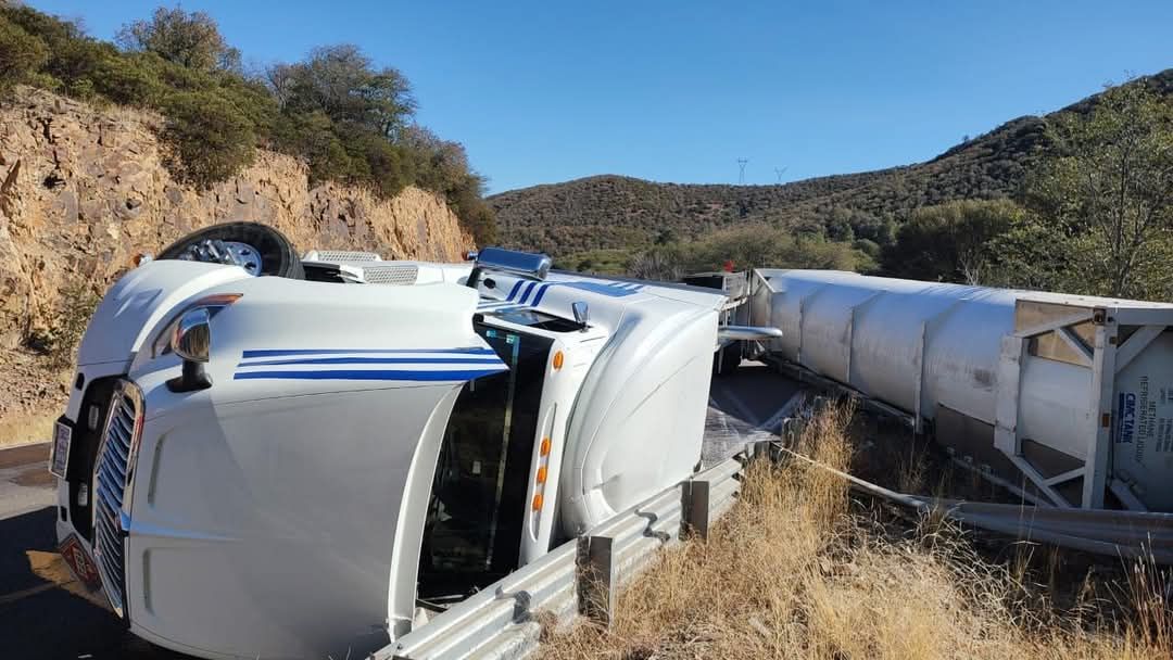 Tránsito lento debido a un accidente de un tractocamión, en el que no hubo lesionados, en el kilómetro 91 de la carretera Cananea-Ímuris, se recomienda precaución.