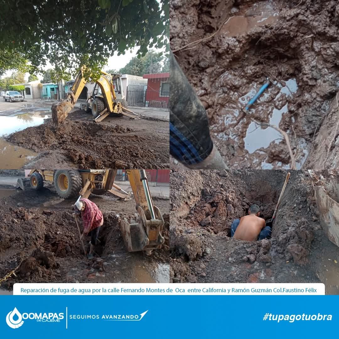 ✅ Reparación de fuga de agua por la calle Fernando Montes de Oca entre California y Ramón Guzmán Col. Faustino Félix.