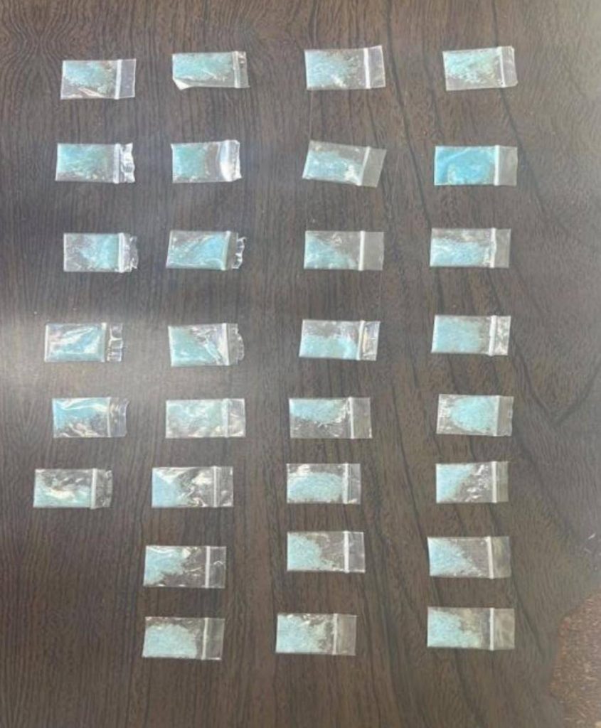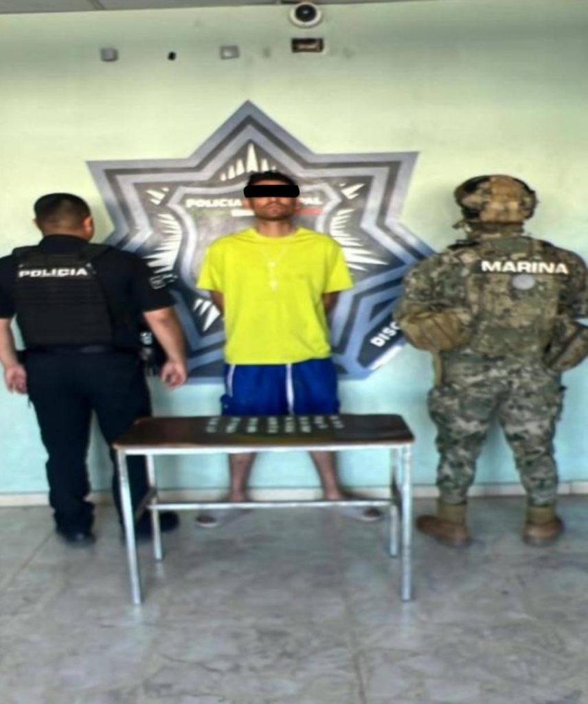Posteriormente, al sur de la ciudad en la colonia Miravalle, elementos capturaron a Edgardo “N.”, de 26 años de edad, a quien tras una revisión corporal se le encontraron en la bolsa delantera de su short 37 dosis de una sustancia granulada al tacto de color azul con características similares a la de un narcótico.