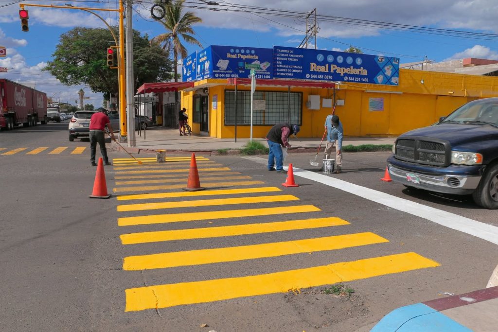 La Secretaría de Seguridad Pública Municipal (SSPM) a través del área de Semaforización y Señalización llevaron a cabo trabajos de rehabilitación en el cruce de las calles Chihuahua y 6 de Abril, con el objetivo de mejorar la seguridad vial y la visibilidad para los peatones.