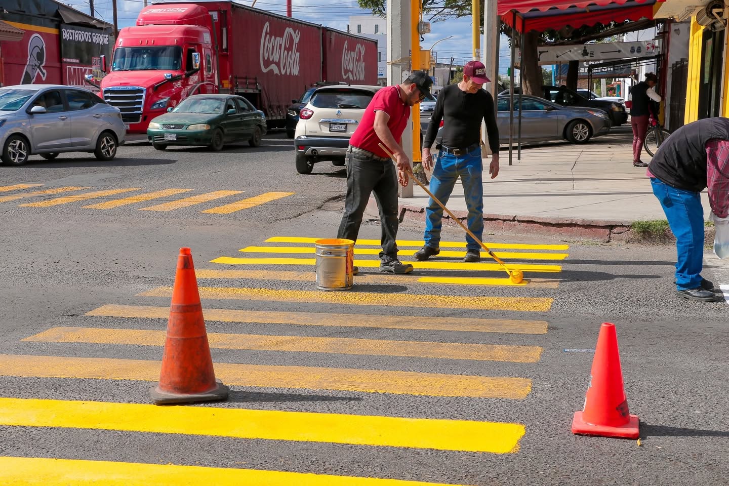 Se renovó la pintura del cruce peatonal, mejorando la visibilidad de las zonas destinadas al paso de peatones. Además, se realizaron trabajos de pintura en los semáforos del cruce para asegurar su correcta visibilidad y funcionamiento.