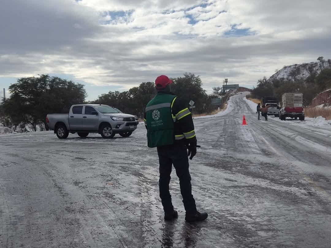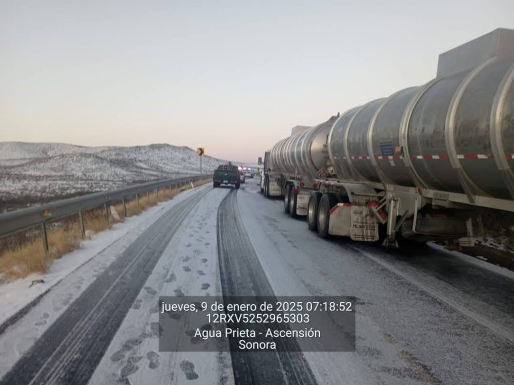 Debido a la caída de nieve y las condiciones del estado del tiempo, está cerrado el tramo carretero Puerto San Luis, en la carretera Janos-Agua Prieta; así como otros tramos carreteros en zonas altas en municipios como Nacozari, Bacoachi así como en la carretera Agua Prieta-Bavispe.