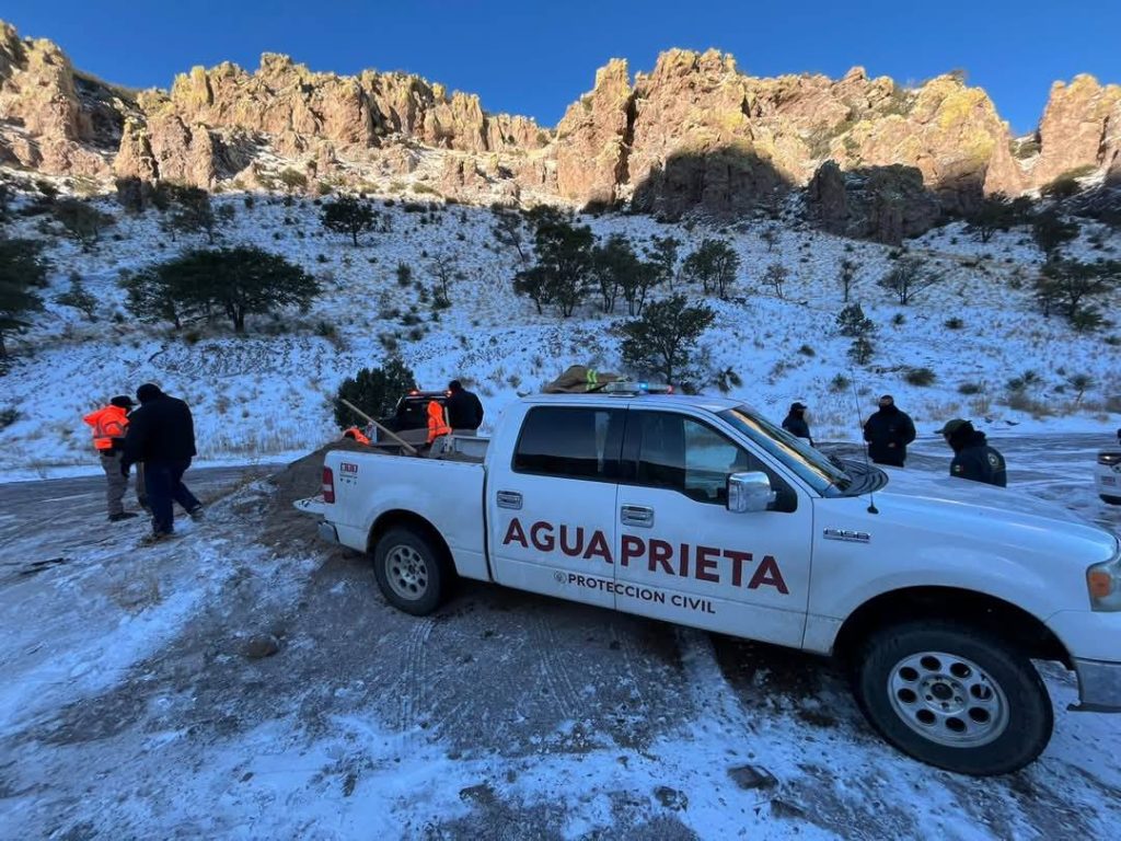 Luego de las intensas nevadas de los dos últimos días en Puerto San Luis, en la carretera Agua Prieta-Janos, sigue el trabajo coordinado de los 3 niveles de gobierno para buscar la reapertura de ese tramo carretero.