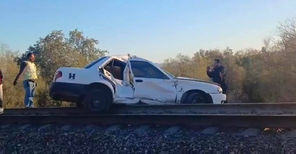Esta mañana el conductor de un auto sedán intentó ganarle el paso al tren carguero y fue impactado, en hechos ocurridos por rumbos del bulevar Ganaderos en Hermosillo.