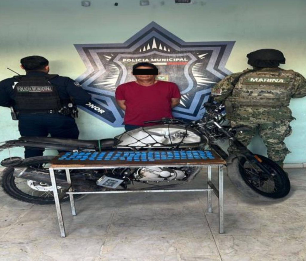 Por otro lado, en un trabajo en conjunto para garantizar la seguridad de los ciudadanos y combatir el crimen en el municipio, elementos de la SSPM y Marina capturaron a un sujeto quien conducía una motocicleta sin placas de circulación en las calles Misión Fray Salvatierra y Cocóspera, de la colonia Kino. Al presunto, de nombre Luis José “N.”, de 54 años de edad, se le encontraron 114 envoltorios de plástico que contenían una sustancia granulada con características similares a un narcótico, por lo que se le detuvo por el probable delito contra la salud.