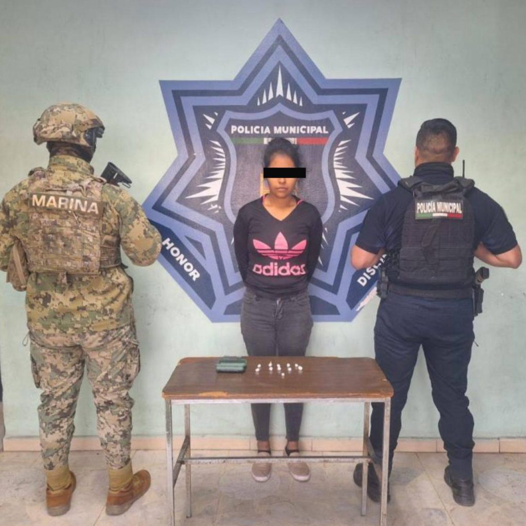 En la colonia Villas del Palmar, luego de un operativo coordinado por las calles Paterna entre Puerto de la Luz y calle Palma se detuvo a Brenda Guadalupe “N.”, de 24 años de edad, a quien se le aseguraron 11 envoltorios de plástico transparente que contenían una sustancia granulada con características similares a un narcótico. Por estos hechos, fue puesta a disposición de las autoridades correspondientes, por el presunto delito contra la salud.