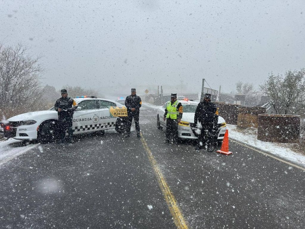 En cumplimiento de la Estrategia Nacional de Seguridad del Gobierno de México, en los estados de Chihuahua y Sonora, elementos de la Guardia Nacional implementaron operativos de seguridad y prevención de accidentes, en carreteras donde se registran nevadas por la presencia del frente frío número 22.