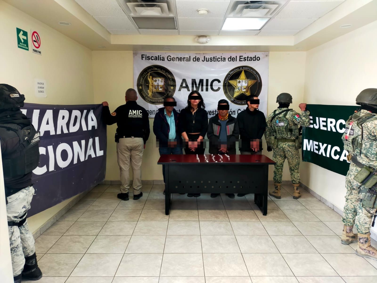 San Luis Río Colorado.- En un operativo conjunto entre elementos de la Secretaría de la Defensa Nacional (DEFENSA), la Agencia Ministerial de Investigación Criminal (AMIC) y la Guardia Nacional (GN), se logró el aseguramiento de cuatro hombres y diversas dosis de droga en un domicilio ubicado en la avenida Puebla B, colonia Altar.