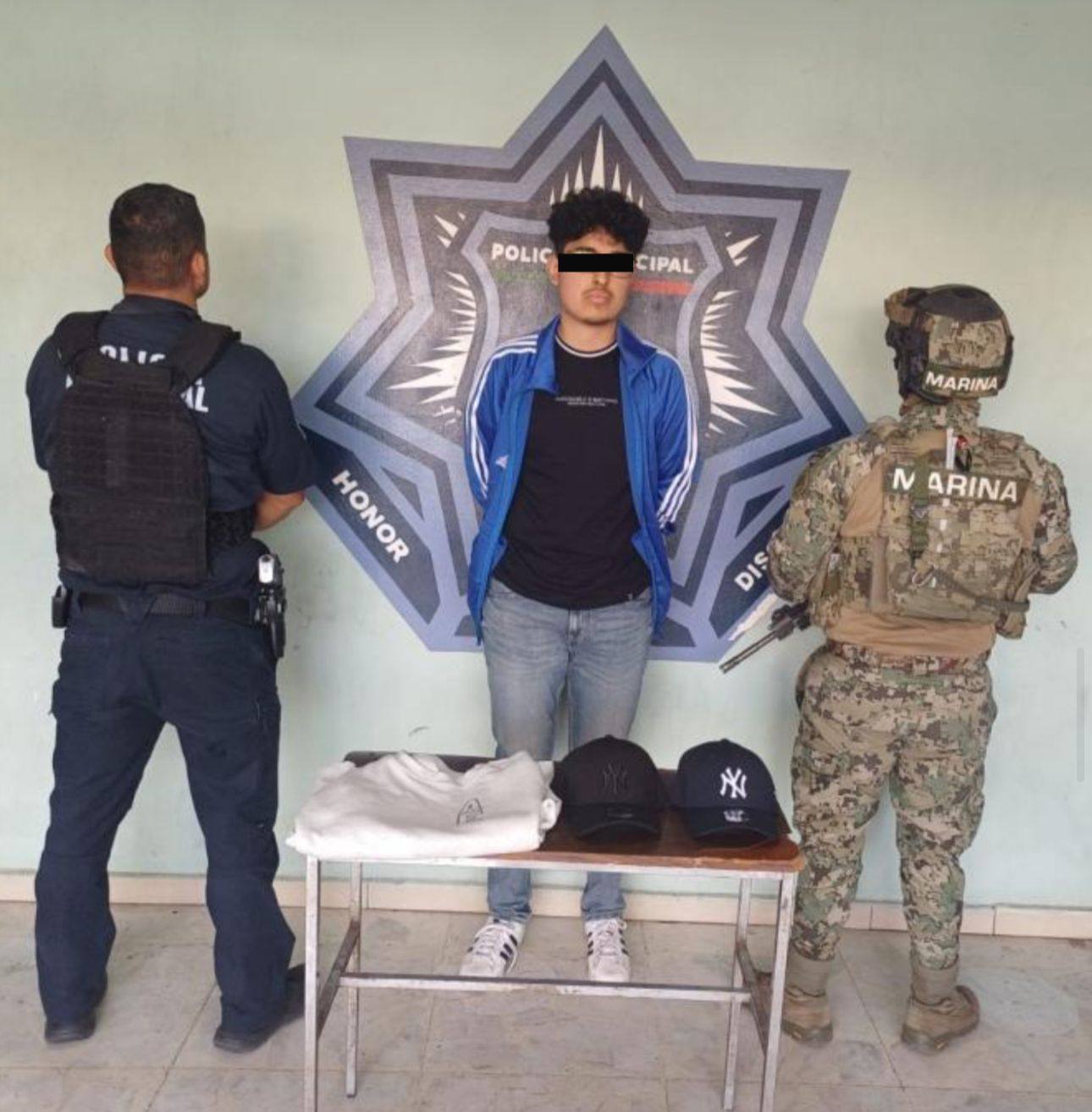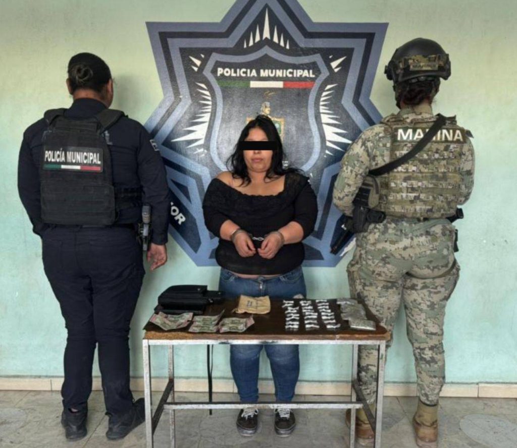 Por otro lado, en las calles Mayo, entre Pascual Orozco y San Marino, se realizó la detención de Johana Evelyn “N.”, de 27 años, quien presuntamente fue encontrada en posesión de 24 envoltorios con una sustancia granulada similar a un narcótico, y 4 envoltorios con hierba verde con características similares a la marihuana, por lo que fue detenida por los elementos de SSPM y Marina por el presunto delito de robo a comercio.