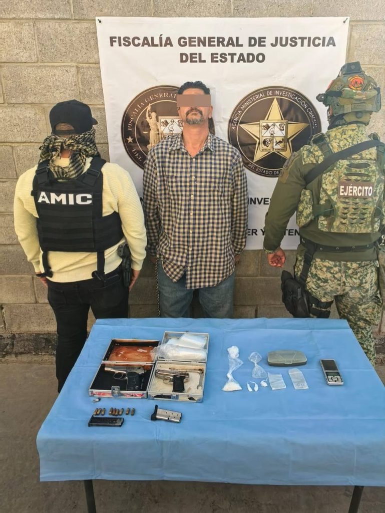 Mientras que en la colonia El Sahuaro, los elementos del operativo neutralizaron a Ramón Humberto “N”, alias “Beto Pérez”, quien contaba con orden de aprehensión vigente por violencia familiar y tenía registros criminales por secuestro y asociación delictuosa.