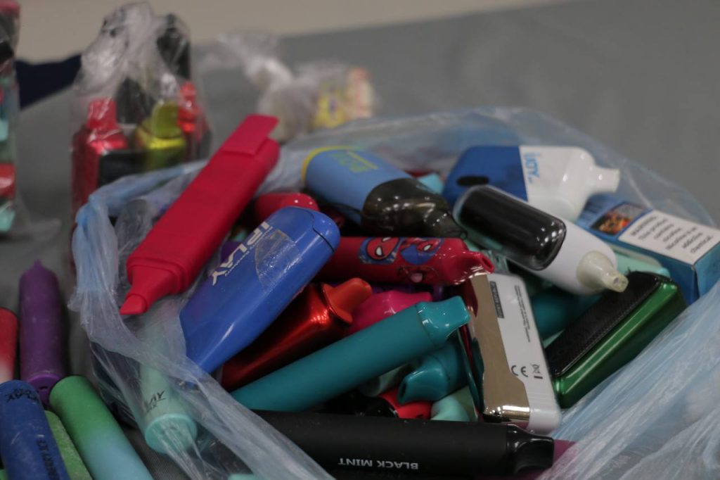 En total, fueron recolectados 106 vapeadores, un cartucho para rellenar y siete encendedores.