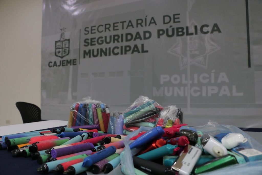Como parte de las acciones de prevención del delito y protección a la salud, la Secretaría de Seguridad Pública Municipal (SSPM), a través de la Dirección de Programas en Prevención del Delito, realizó la recolección de vapeadores decomisados en instituciones educativas de nivel básico en Cajeme.