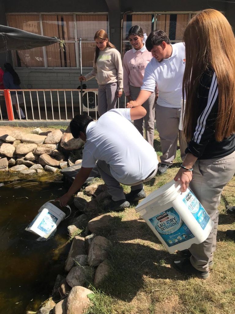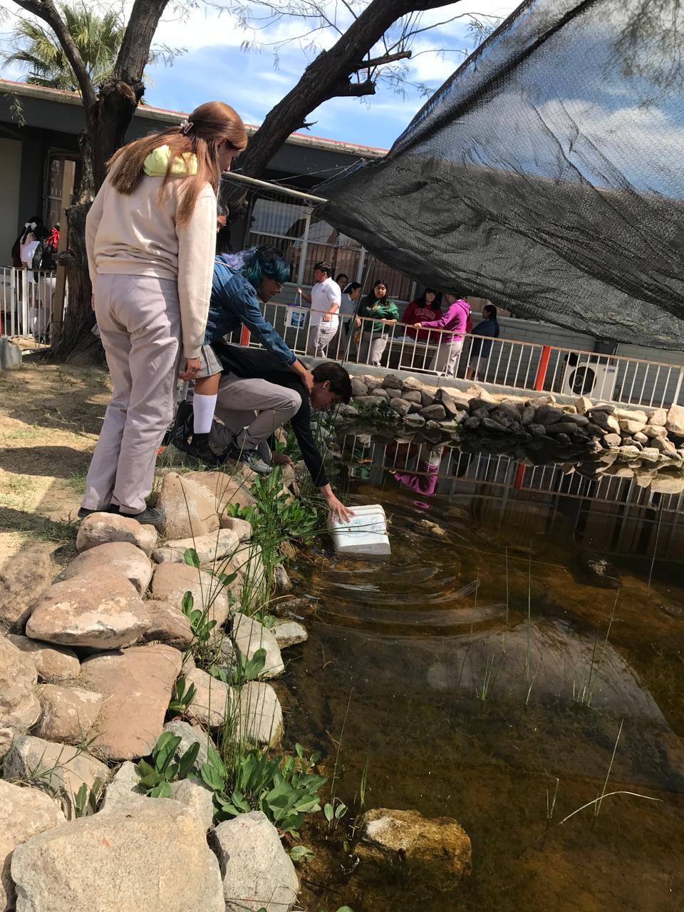 “El alumnado, como parte de su formación, participa en todas las actividades de monitoreo y estudio de la calidad del agua del estanque, en la limpieza, cuidado y alimentación de los peces, además de promover y dar orientación a estudiantes de otras escuelas que visitan el refugio del pez”, comentó Isela Gamboa Hernández, directora del centro escolar.
