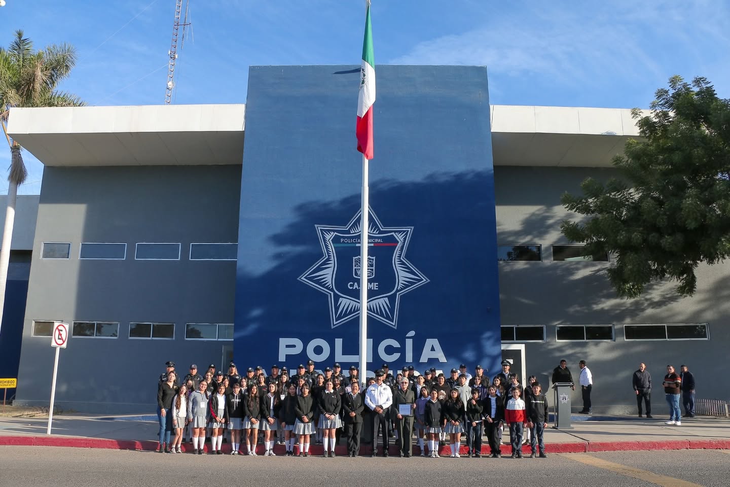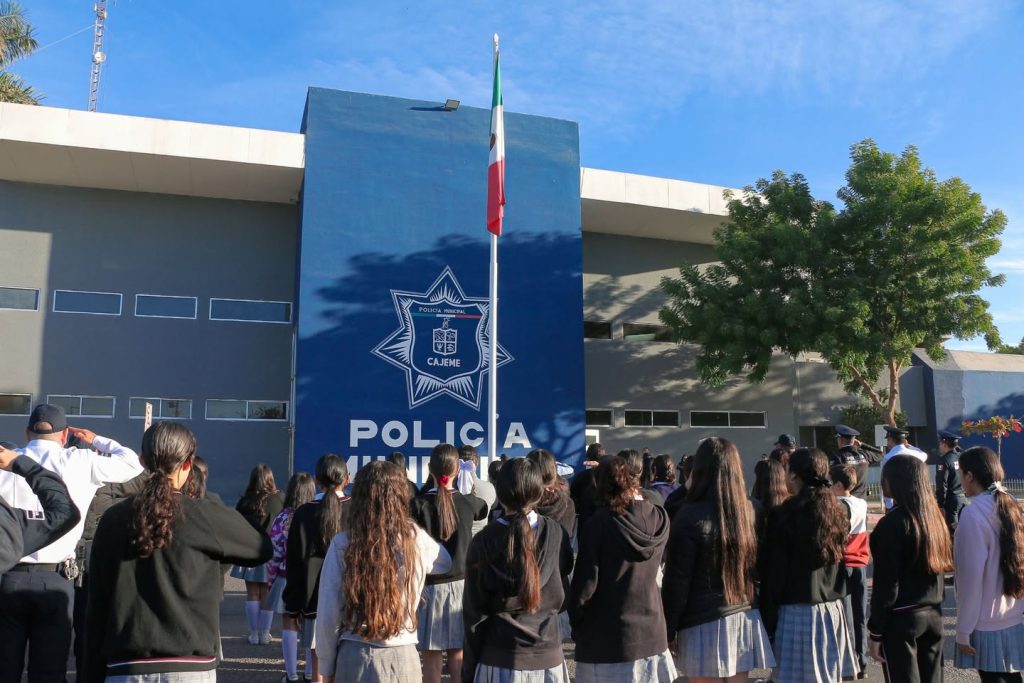 Como cada lunes, en las instalaciones de la Secretaría de Seguridad Pública Municipal (SSPM), se llevó a cabo la ceremonia cívica, en la cual se contó con la presencia de las y los alumnos de la Escuela Secundaria Técnica número 56.
