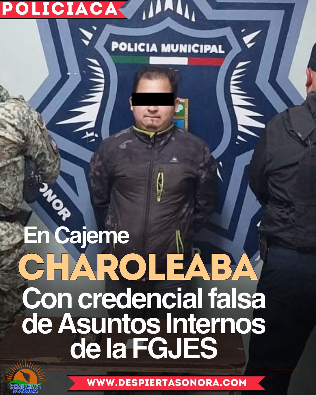 La detención se realizó en la calle Abeto de la colonia Beltrones, en Ciudad Obregón, municipio de Cajeme, Sonora, donde elementos de la Policía Municipal y Secretaría de la Defensa Nacional (DEFENSA) solicitaron el apoyo de la Agencia Ministerial de Investigación Criminal (AMIC) tras asegurar al imputado, pues este se ostentaba como elemento activo de la Fiscalía de Sonora.