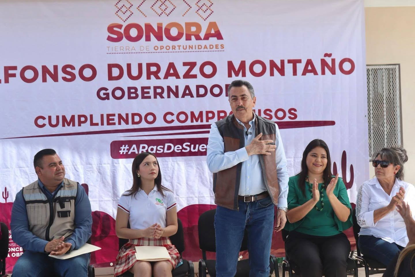 Al dar la bienvenida a la comunidad académica, maestras y maestros, así como a madres y padres de familia, el Alcalde Municipal de Cajeme manifestó que es un gusto estar en eventos donde se entregan obras, sobre todo cuando las obras son de carácter educativo, a la vez que reconoció el esfuerzo y la paciencia de las y los estudiantes que durante varios años tomaron clases en otras escuelas, pues carecían de plantel educativo.