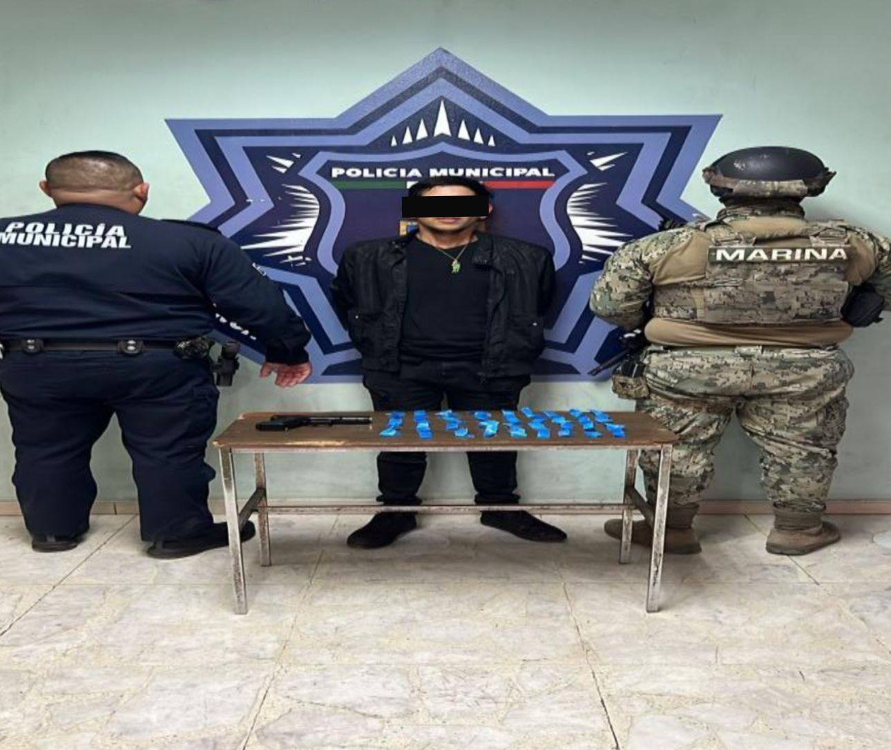 En otro hecho, en las calles California y Lateral Esperancita, en la colonia Alameda, se recibió un reporte de que un hombre presuntamente portaba lo que parecía un arma, por lo que los elementos de Policía Municipal y Marina le realizaron una inspección y se le encontró un objeto tipo pistola réplica de plástico, y 35 envoltorios de una sustancia con características similares a una droga. El presunto, de nombre, Armando “N.”, de 29 años de edad, fue detenido por la probable comisión del delito contra la salud.