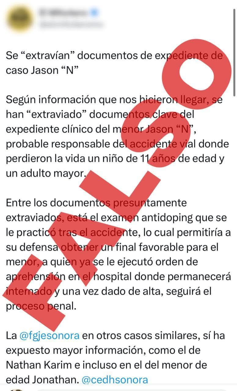 FISCALÍA DE SONORA DESMIENTE SEÑALAMIENTO DE QUE SE PERDIÓ EXPEDIENTE DE MENOR INVOLUCRADO EN ACCIDENTE VEHICULAR