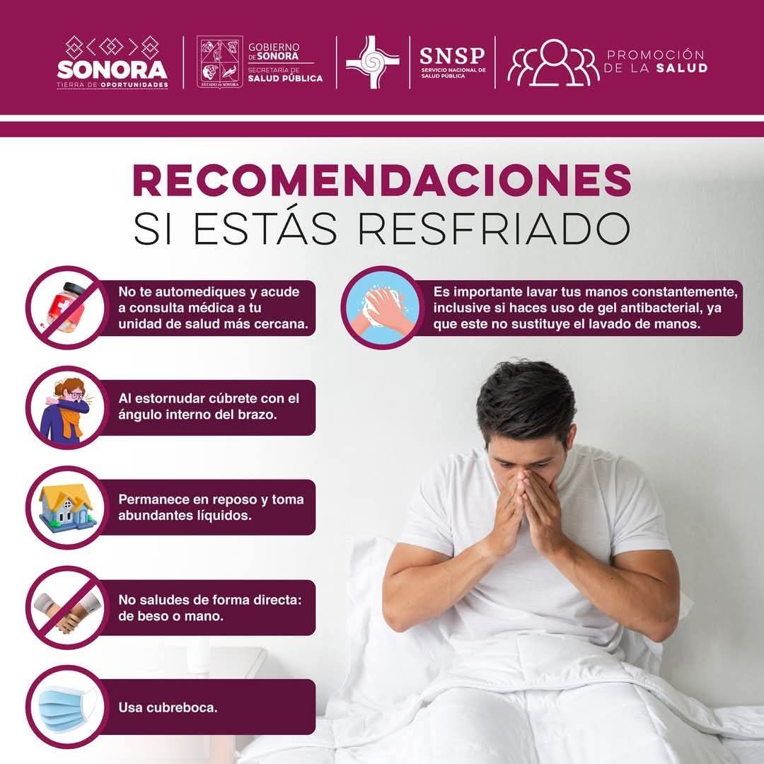 ATENCIÓN, SI SUFRES DE RESFRIADOSIGUE LAS RECOMENDACIONES DE LA SECRETARÍA DE SALUD DE SONORA