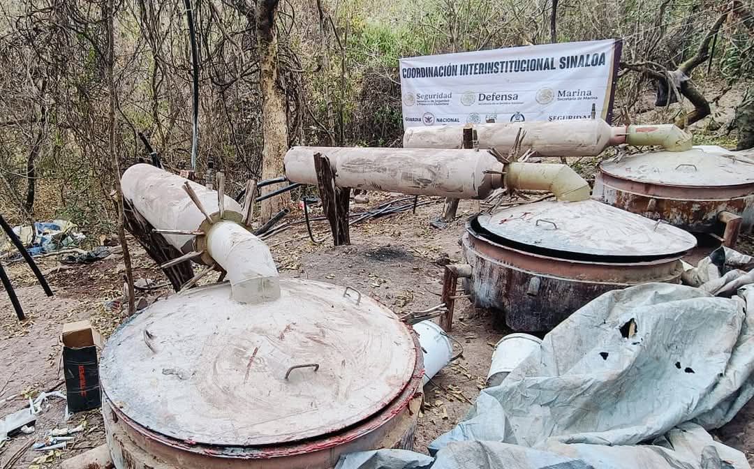 La vocería de seguridad pública reseño que en elementos del ejército en labores de vigilancia en las comunidades de Los Cedritos, la Bacata, el Bichi de arriba, el Cajoncito, la Llama y Vizcaino, en el municipio de Cósala se localizaron parte de los laboratorios.