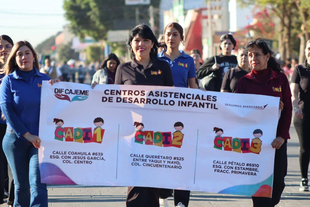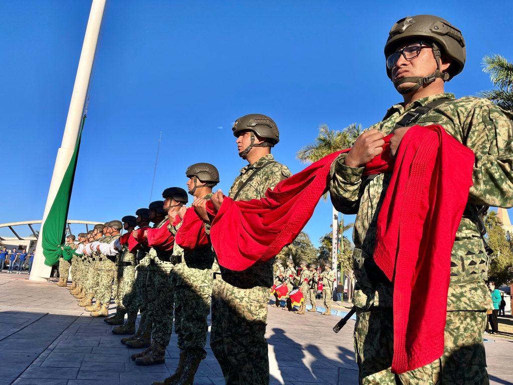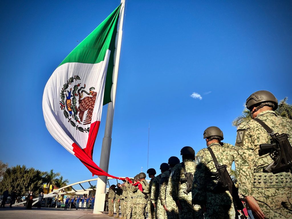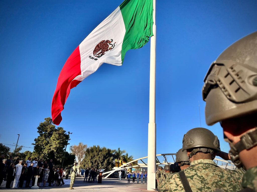 Luego de la ceremonia de izamiento de Bandera, con la participación de mil 633 personas distribuidas en 32 contingentes, 28 vehículos y 18 motocicletas, se llevó a cabo el tradicional Desfile Cívico alusivo al 112 Aniversario del Día de la Bandera Mexicana, eventos que, en su calidad de primera autoridad, fueron presididos por el Alcalde Javier Lamarque en compañia de Martha Patricia Patiño Fierro, Presidenta del Voluntariado de DIF Cajeme.