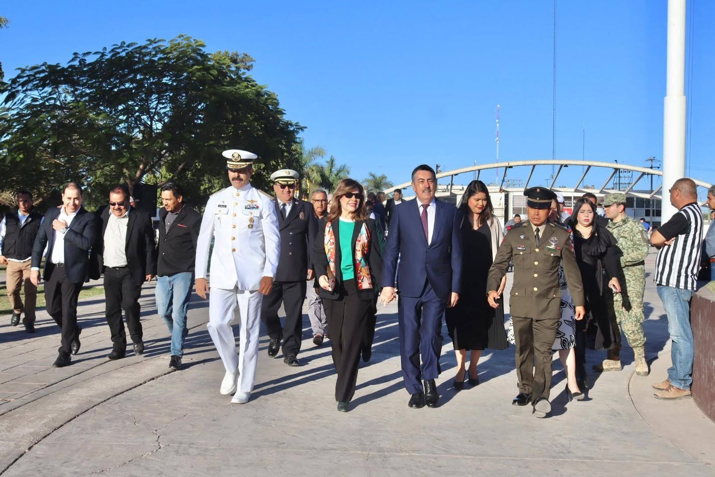 Durante los eventos cívicos, acompañaron la Presidente Municipal, el Mayor de Infantería Benjamín Victoriano Parrilla en representación del Comandante del 60 Batallón Infantería Roberto Rico Vázquez; Contralmirante Claudio Cruz Hernández, Secretario de la SSPM; Josefina Leyva González, Síndico Municipal; Deni Gastélum Barreras, Diputada Local Distrito 16; María Cristina Pérez Valenzuela, Subdirectora de Valores Cívicos; así como las y los regidores del cuerpo colegiado del Ayuntamiento.