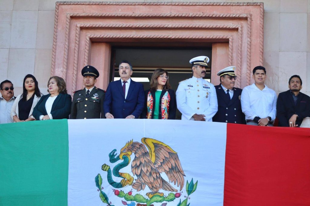 Dando inicio con un izamiento de Bandera, celebrado en la plaza Álvaro Obregón, posteriormente se dirigió al balcón del Palacio Municipal para presidir el desfile cívico en conmemoración del Lábaro Patrio, en el que participaron corporaciones de los tres órdenes de gobierno, instituciones educativas de los diferentes niveles de instrucción y las Comisarías de la localidad.