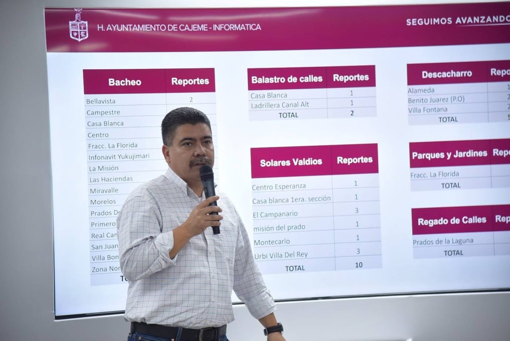 Alumbrado público, bacheo, balastro de calles, solares baldíos, descacharrización, parques y jardines, además de regado de vías, son algunas de las peticiones que han sido solicitadas a través de la aplicación Cajeme Reporte Ciudadano, atendiendo a vecinas y vecinos de colonias como Bellavista; Campestre; Casa Blanca; Centro; Fraccionamiento la Florida; Infonavit Yukujimari; La Misión; Las Haciendas; Miravalle; Morelos; Prados del Tepeyac; Primero de Mayo; Real Campestre; San Juan Capistrano; Villa Bonita; Zona Norte; Ladrillera; Alameda; Benito Juárez; Villa Fontana; Montecarlo; Urbi Villas del Rey; entre otros.