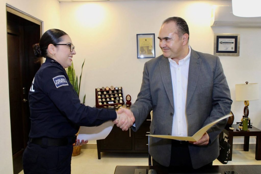 Hermosillo, Sonora; 9 de marzo del 2025.- Como parte de las acciones de mejora en la Secretaría de Seguridad Pública (SSP) para la profesionalización policial, dos oficiales de la Policía Estatal de Seguridad Pública tomaron protesta en nuevos cargos.