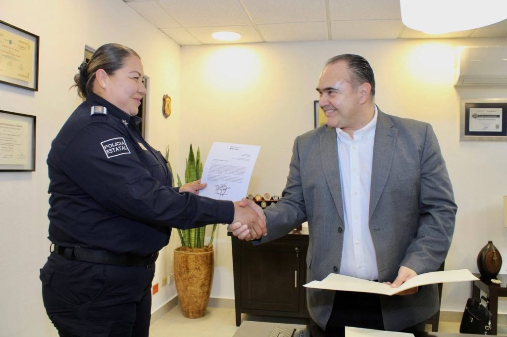 Víctor Hugo Enríquez García, secretario de la SSP Sonora junto a José Guadalupe Martínez Lavariega, Comisario General de la Coordinación Estatal de la Policía Estatal de Seguridad Pública nombró a las policías estatales Karla Mariela Duarte Escalante y Zulema Guadalupe López Alday, como titular de la base operativa en Hermosillo y encargada del programa Jornada Permanente por la Paz, respectivamente.