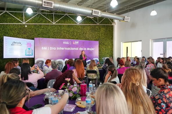 Hermosillo, Sonora; 14 de marzo de 2025. – En el marco del Día Internacional de las Mujeres, el Gobierno del Estado, a través del Sistema DIF Sonora, ofreció a servidoras públicas la conferencia “Transitando del autoconcepto al amor propio: Aceptación de la imagen corporal de las mujeres”, impartida por la especialista, Mariel Michessedett Montes Castillo.