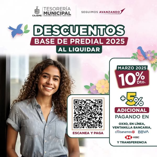 #MunicipiodeCajeme#SeguimosAvanzando#tesorería#prediales#descuentos#enero2025