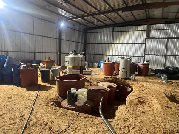 Dentro del inmueble, los elementos encontraron equipo especializado para la producción de narcótico sintético, además de asegurar un fusil calibre 5.56×45 con dos cargadores abastecidos y un vehículo pick-up GMC Sierra modelo 2023, color blanco, con reporte de robo en Estados Unidos de América.