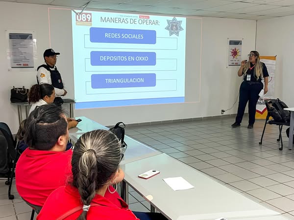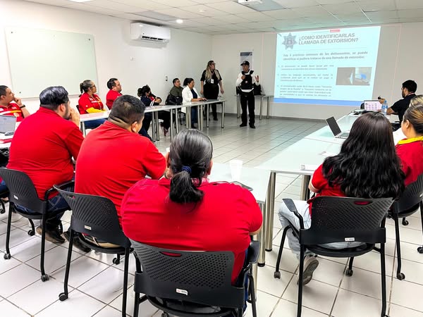 a plática fue impartida por instructores especializados en seguridad y prevención de delitos, quienes detallaron las diversas modalidades de extorsión telefónica, explicando cómo los delincuentes suelen manipular y coaccionar a las víctimas para obtener dinero o información sensible, además ofrecieron recomendaciones sobre cómo identificar llamadas sospechosas y cómo proceder en caso de recibir este tipo de amenazas.