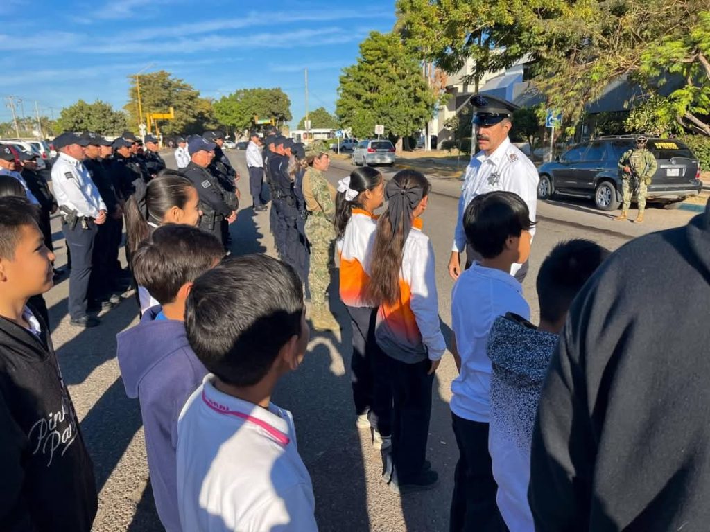 Este lunes, la Secretaría de Seguridad Pública Municipal (SSPM) llevó a cabo su tradicional ceremonia cívica, en la cual tuvo el honor de recibir a las y los alumnos de la Secundaria General 5 “Faustino Félix Serna” como invitadas e invitados especiales.