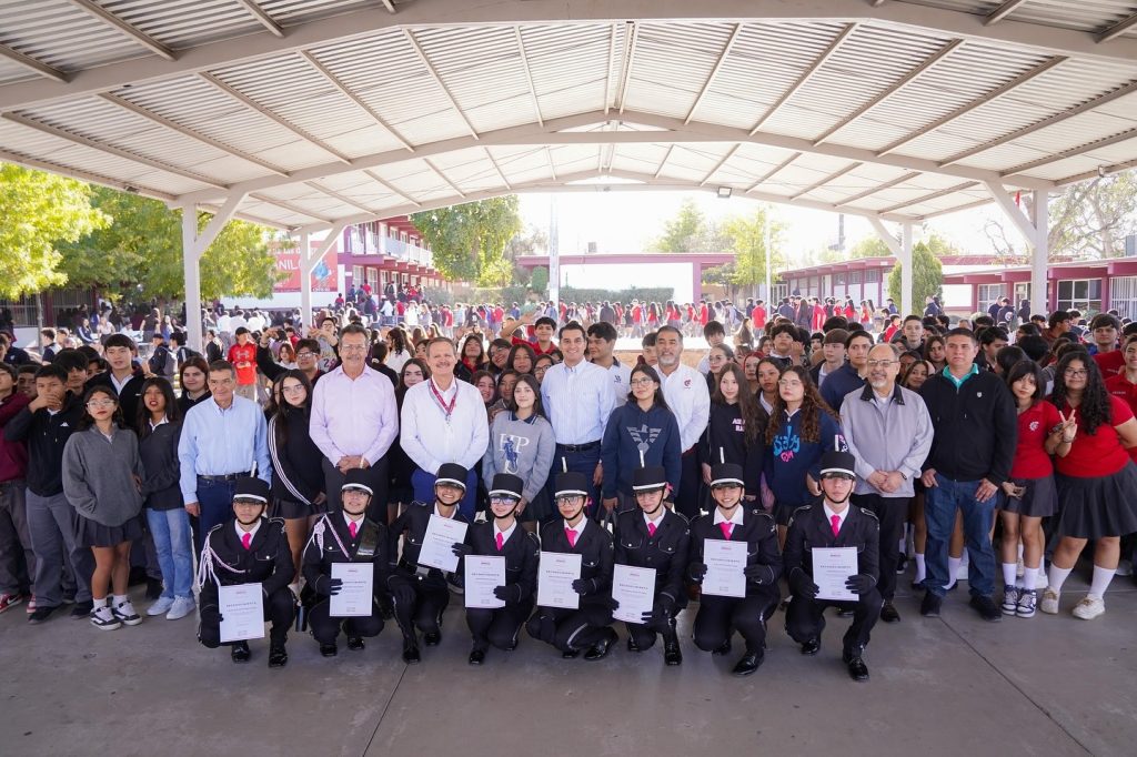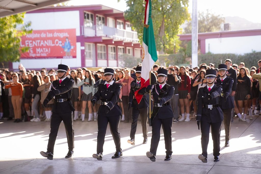 Durante la ceremonia de Lunes Cívico realizada en el plantel educativo ubicado en Hermosillo, el titular de la Secretaría de Educación y Cultura (SEC) resaltó la gallardía demostrada por los jóvenes en la etapa estatal del evento organizado por la Dirección General de Educación Tecnológica Industrial y de Servicios (DGETI).
