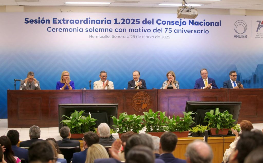 En el marco de esta firma de memorándum con la UNAM, el gobernador Durazo encabezó los trabajos de la Sesión Extraordinaria 1.2025 del Consejo Nacional, en conmemoración del 75 aniversario de la Asociación Nacional de Universidades e Instituciones de Educación Superior (Anuies).