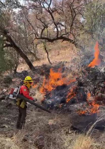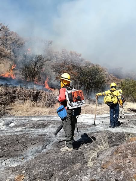Personal de la Brigada Estatal de Manejo de Fuego de Sagarhpa y Protección Civil Sonora, trabajando junto con brigadistas de la Comisión Nacional Forestal (Conafor), de la Secretaría de la Defensa Nacional, personal de la Unión Ganadera así como de autoridades municipales, logró el 100 por ciento de control en el incendio forestal en el predio Los Vallecitos, en el municipio de Yécora.