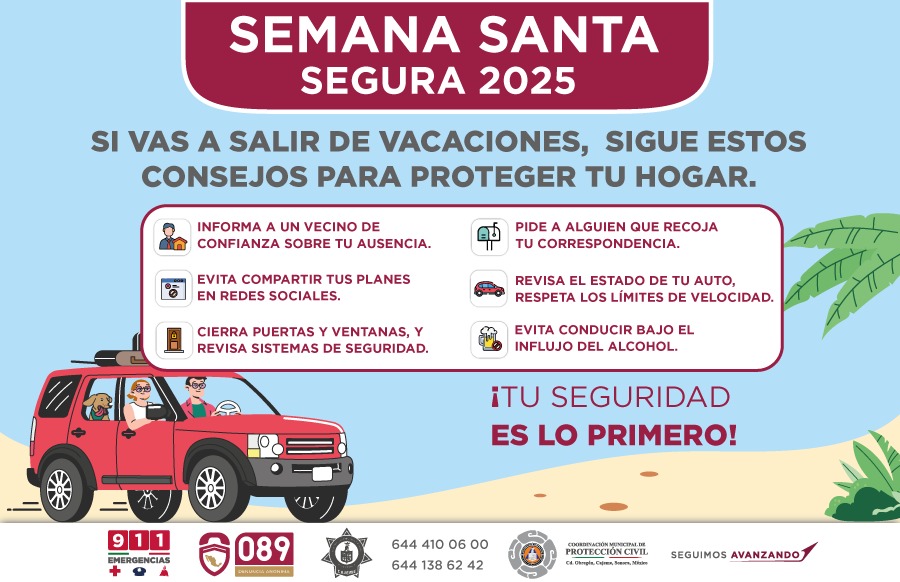 La Secretaría de Seguridad Pública Municipal (SSPM) recomienda a las y los ciudadanos que planean salir de viaje durante la Semana Santa 2025, medidas para garantizar la seguridad vial y prevenir accidentes.