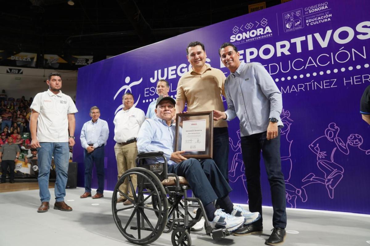 Durante la ceremonia, se hizo un homenaje a la trayectoria de más de 40 años del maestro Martín Martínez Herrera, incansable promotor del deporte y formador de muchas generaciones de alumnos de nivel básico y superior, siendo esta la primera vez que los Juegos Deportivos llevan el nombre de una persona.