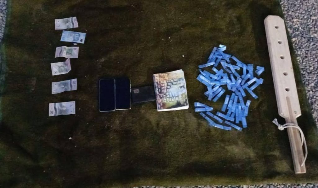 Sin embargo, fueron alcanzados metros adelante y, al realizar una inspección al vehículo, localizaron 60 envoltorios de cristal, una tabla, droga, dos teléfonos celulares y un cuaderno con apuntes de números telefónicos.