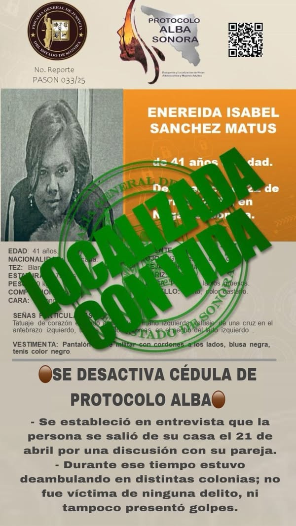#𝗗𝗘𝗦𝗣𝗜𝗘𝗥𝗧𝗔𝗦𝗢𝗡𝗢𝗥𝗔 – Se estableció en entrevista que la persona salió de su casa el 21 de abril por una discusión con su pareja. – Durante ese tiempo estuvo deambulando en distintas colonias; no fue víctima de ninguna delito, ni tampoco presentó golpes. Navegación de entradas El morenista Javier Lamarque encabeza encuesta rumbo a elección a gobernador de SonoraDetiene UMAV a dos hombres por violencia familiar en Cajeme