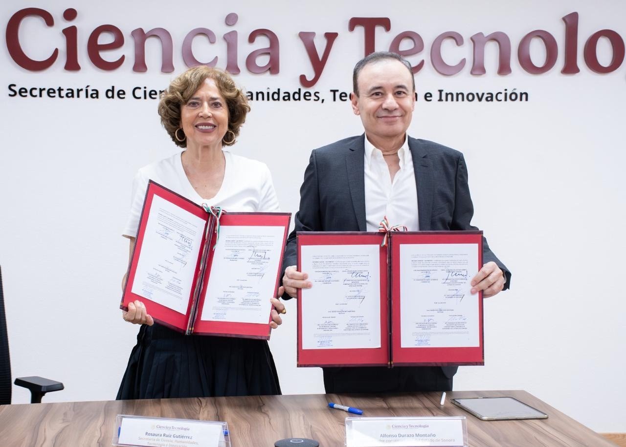 El mandatario estatal informó que este convenio representa la base para cumplir el proyecto de investigación prioritario de la presidenta Claudia Sheinbaum, en el que Sonora juega un papel fundamental para la producción de alta tecnología y el diseño de herramientas para el desarrollo sustentable.