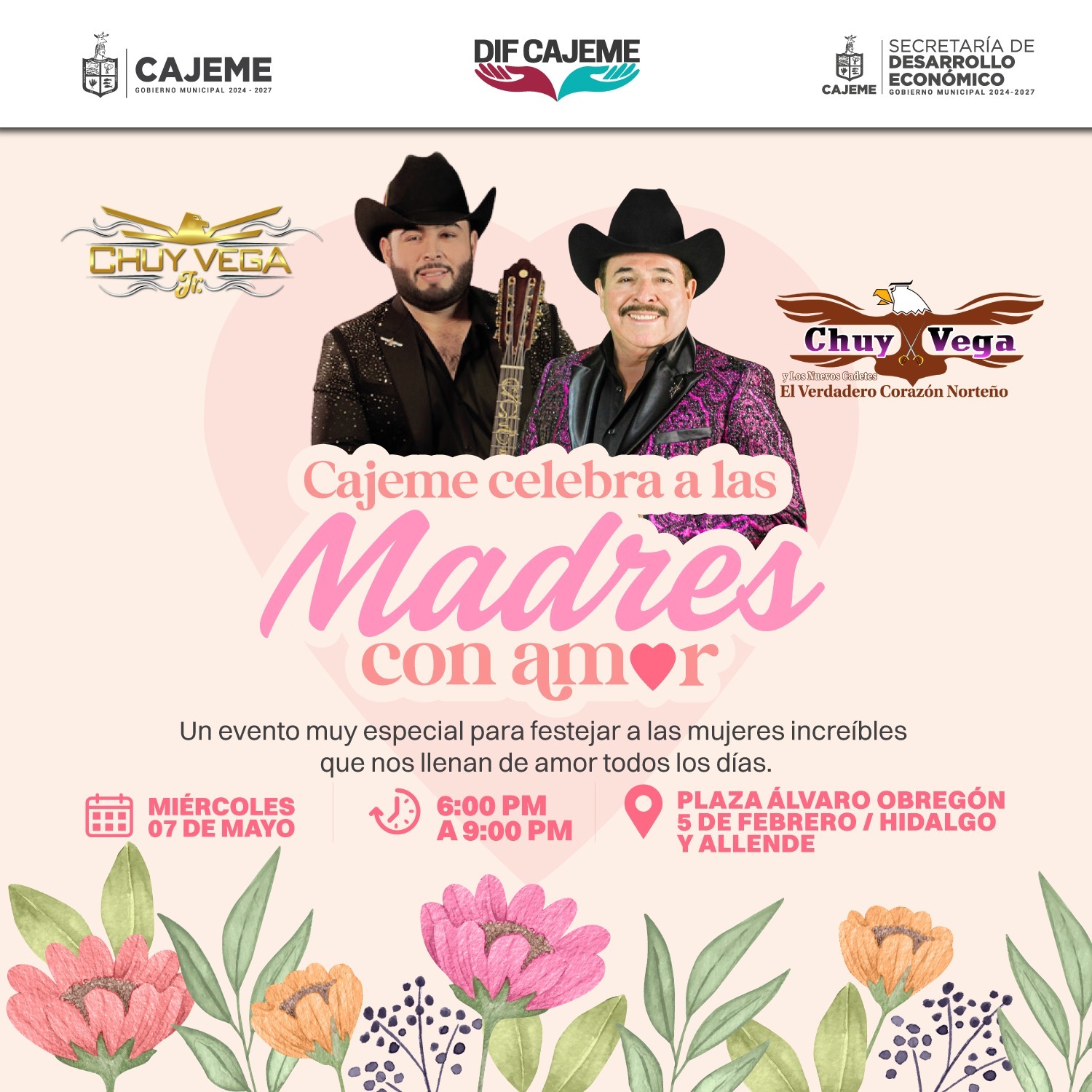 Ven y acompáñanos frente al Palacio Municipal para disfrutar de una tarde llena de alegría, cariño y música en vivo con la participación especial de Chuy Vega y Chuy Vega Jr., quienes pondrán el alma en cada canción para homenajear a quienes dan tanto sin pedir nada a cambio. 🎶❤️