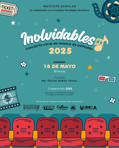 El Gobierno Municipal de Cajeme, a través del Instituto Municipal de Cultura de Cajeme (IMCCA) y en coordinación con el Instituto Schiller, invitan cordialmente a la ciudadanía a disfrutar del tradicional concierto coral “Inolvidables”, que se llevará a cabo el próximo domingo 18 de mayo a las 18:00 horas en el Teatro Dr. Oscar Russo Vogel.