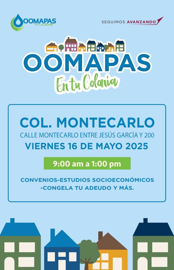 ATENCIÓN CIUDADANOS DE LA COLONIA MONTECARLO EL OOMAPAS DE CAJEME IRÁ A TU COLONIA PARA QUE TE REGULARICES